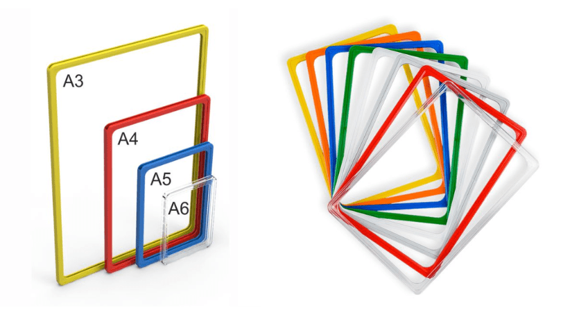- большой выбор размеров пластиковых торговых рамок (форматы А3, А4, А5).
