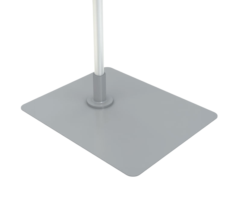 Прямоугольная металлическая подставка выполняет функцию несущего основания для вертикальных рекламных стоек. За счёт прямоугольной формы обеспечивается надёжная опора и устойчивость конструкции при эксплуатации в зонах с высокой проходимостью. Основание равномерно распределяет нагрузку и помогает сохранять вертикальное положение стойки.