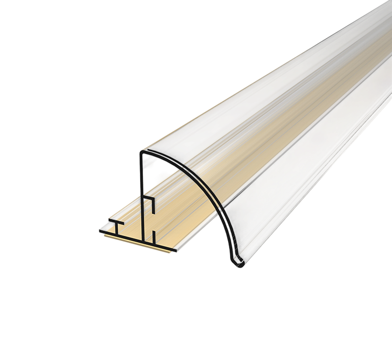 Закруглённая форма профиля улучшает внешний вид полки и делает выкладку более аккуратной и структурированной. Профиль рассчитан на рекламные вставки высотой 30 мм и совместим со стандартными ценниками, что позволяет использовать его как универсальный элемент оформления.